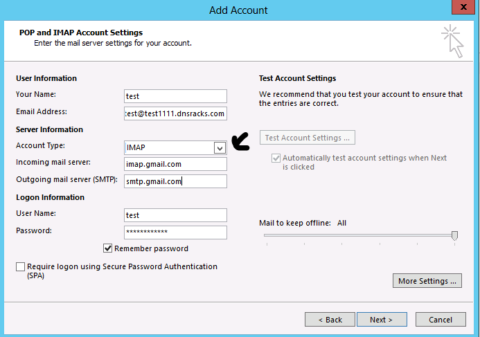 8. Click next and your account has been configured with the IMAP protocol.